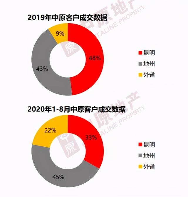 2019年華夏客戶成交數據顯示,昆明當地客戶占瞭48%,地州市的占瞭43%,外省的隻要9%。